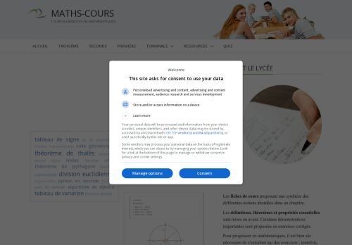 Comprendre les maths de niveau primaire, collège et lycée avec 100 cours interactifs, 1000 exercices corrigés, des vidéos éducatives, des jeux pédagogiques et un espace pour poser des questions.