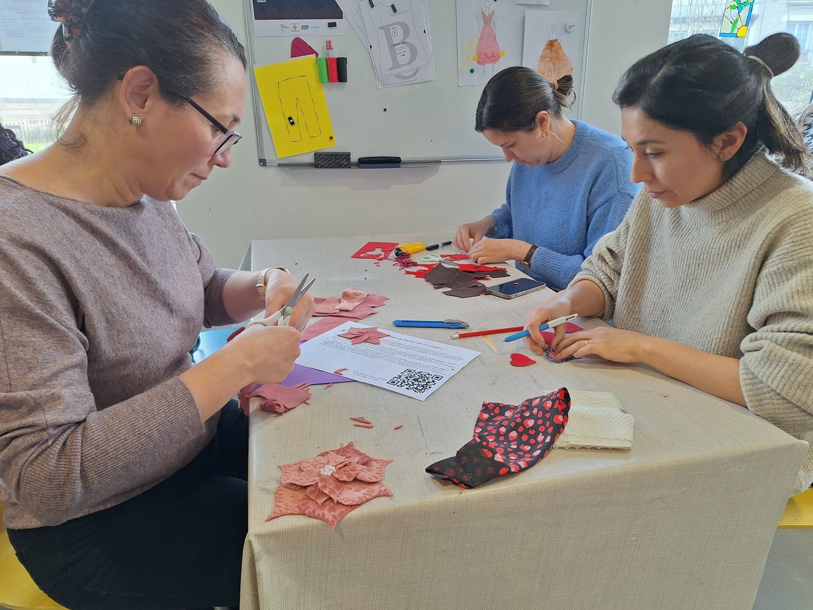 En février 2026, un groupe d’adultes de l’Apprentissage du français a pu découvrir cette exposition, et participer à l’atelier de création de broches en tissu – chaque réalisation étant une œuvre originale !
