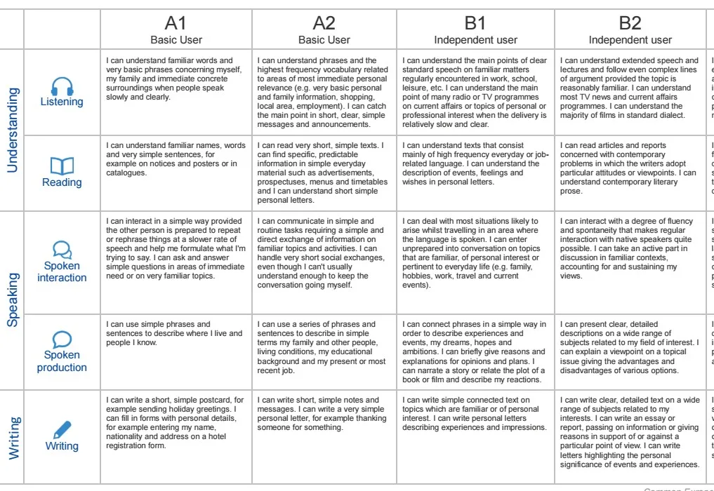 The various levels of our groups follow the CECRL (Common European Framework of Reference for Languages) : A1.1, A1, A2, B1, B2.